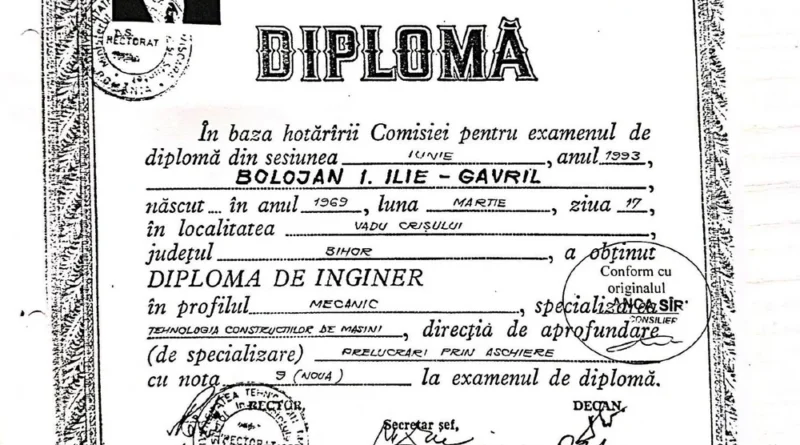 Ilie Bolojan a publicat diploma de absolvire